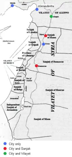 "Districts" according to the McMahon letter and their administrative category in the Ottoman Empire