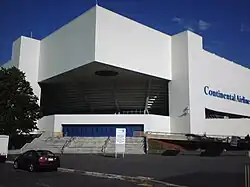 Meadowlands Arena[4] (formerly Brendan Byrne Arena, Continental Airlines Arena and Izod Center) is a closed indoor sports and concert venue located in the Meadowlands Sports Complex in East Rutherford, New Jersey, United States. Since closing, the state-owned facility has been used as a rehearsal stage by major concert-touring music stars and by NBCUniversal for television filming. The arena is located on New Jersey Route 120 across the highway from MetLife Stadium and the Meadowlands Racetrack, next to the American Dream shopping and entertainment complex.