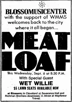 A printed ad for a Meat Loaf concert in 1978