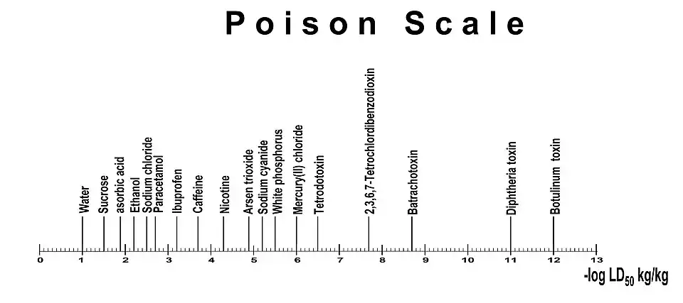 | Cantharidin (from blister beetles) | human, oral | 500 μg/kg | 0.0005 | [76] |
