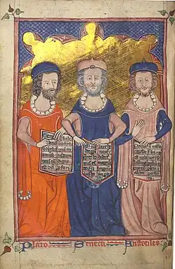 Plato, Seneca, and Aristotle from Devotional and Philosophical Writings, c. 1330