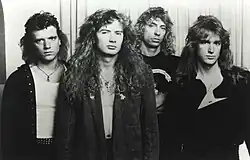 ![]() Megadeth performing at the O2 Arena in October 2025. Left to right: James LoMenzo, Dirk Verbeuren, Dave Mustaine and Teemu Mäntysaari. | |
