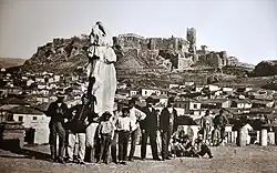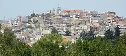 Megara (/ˈmɛɡərə/; Greek: Μέγαρα, pronounced [ˈmeɣaɾa]) is a historic town and a municipality in West Attica, Greece. It lies in the northern section of the Isthmus of Corinth opposite the island of Salamis, which belonged to Megara in archaic times, before being taken by Athens.[3][4] Megara was one of the four districts of Attica, embodied in the four mythic sons of King Pandion II, of whom Nisos was the ruler of Megara. Megara was also a trade port, its people using their ships and wealth as a way to gain leverage on armies of neighboring poleis. Megara specialized in the exportation of wool and other animal products including livestock such as horses. It possessed two harbors, Pagae to the west on the Corinthian Gulf, and Nisaea to the east on the Saronic Gulf of the Aegean Sea. Greek painter Théodore Jacques Ralli created countless paintings featuring the village of Megara between 1873 and 1909.[5]
