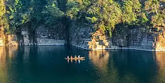Meghalaya is one of the Seven Sister States of northeast India. The state of Meghalaya is mountainous, with stretches of valley and highland plateaus, and it is geologically rich. It consists mainly of Archean rock formations. These rock formations contain rich deposits of valuable minerals like coal, limestone, uranium and sillimanite.[34] The name Meghalaya was given by Shiba P. Chatterjee, a geography professor at the University of Calcutta.[35]