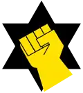 At some time in the late 1950s, Kahane assumed the persona of a Gentile, along with the pseudonym Michael King.[32] Kahane began openly expressing his anticommunism. He and Joseph Churba created the July Fourth Movement, which was formed to counteract widespread opposition towards U.S. involvement in the Vietnam War.[33] Subsequently, they coauthored the book The Jewish Stake in Vietnam, an attempt to convince American Jews of the "evil of Communism".[34] The introduction states that, "All Americans have a stake in this grim war against Communism... It is vital that Jews realize the threat to their very survival [should Communism succeed]." Churba had a major falling out with Kahane over the use of paramilitary activities, and they parted ways permanently. Churba went on to pursue his own career, joining the U.S. Air Force, writing many books on the Middle East, and eventually becoming one of Ronald Reagan's consultants. Kahane chose to fight for Jewish rights, and was willing to use extreme measures. He even attempted to acquire and grow biological weapons to use on a Soviet military installation.[35] He began using the phrase "Never again"[36] and conceived the Jewish Star and fist insignia, a symbol resembling that of the Black Panther Party. However, Kahane himself opposed the Black Panthers, claiming they had supported anti-Jewish riots in Massachusetts and had left-wing views.