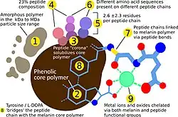 - ^ Kolipakala RS, Basu S, Sarkar S, Biju BM, Salazar D, Reddy L, et al. (7 August 2024). "Fungal Peptidomelanin: A Novel Biopolymer for the Chelation of Heavy Metals". ACS Omega. 9 (34): 36353–36370. doi:10.1021/acsomega.4c03704. ISSN 2470-1343. PMC 11359623. PMID 39220543.