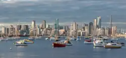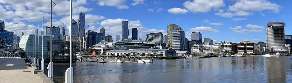 Beginning in the 2010s, the State Government of Victoria initiated a number of major infrastructure projects designed to reduce congestion in Melbourne and encourage economic growth, including the Metro Tunnel, the West Gate Tunnel, the Level Crossing Removal Project and the Suburban Rail Loop.[92][93] New urban renewal zones were initiated in inner-city areas like Fisherman's Bend and Arden, while suburban growth continued on the urban periphery in Melbourne's outer west and east in suburbs like Wyndham Vale and Cranbourne.[94] Middle suburbs like Box Hill became denser as a greater proportion of Melburnians began living in apartments.[95] A construction boom resulted in 34 new skyscrapers being built in the central business district between 2010 and 2020.[96] In 2020, Melbourne was classified as an Alpha city by the Globalization and World Cities Research Network.[97]