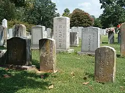 The rapid demographic changes added to the stress of war and occupation and uncertainty about who was in charge, increasing tensions between the city's ethnic Irish policemen and black Union soldiers after the war.[31] In three days of rioting in early May 1866, the Memphis Riots erupted, in which white mobs made up of policemen, firemen, and other mostly ethnic Irish Americans attacked and killed 46 blacks, wounding 75 and injuring 100; raped several women; and destroyed nearly 100 houses while severely damaging churches and schools in South Memphis. Much of the black settlement was left in ruins. Two whites were killed in the riot.[32] Many blacks permanently fled Memphis afterward, especially as the Freedmen's Bureau continued to have difficulty in protecting them. Their population fell to about 15,000 by 1870,[31] 37.4% of the total population of 40,226.