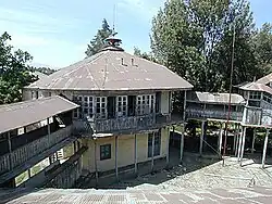 Menelik was the son of the Shewan Amhara king, Negus Haile Melekot, and probably of the palace servant girl Ejigayehu Lemma Adyamo.[10] He was born in Angolalla and baptized to the name Sahle Maryam.[11] His father, at the age of 18 before inheriting the throne, impregnated Ejigayehu, then left her;[12] and did not realize that Menelik was born.[13] The boy enjoyed a respected position in the royal household and he received a traditional church education.[14]