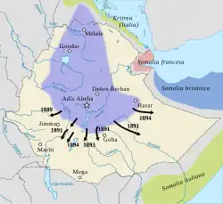 - ^ a b c Marcus, Harold (1975). The Life and Times of Menelik II: Ethiopia 1844-1913. Oxford: Clarendon Press. p. 57.