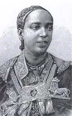 - A daughter, Woizero Shoaregga Menelik, born 1867.[nb 6] She would marry twice and become the mother of: