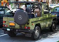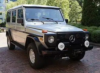 The Mercedes-Benz G-Class, colloquially known as the G-Wagon or G-Wagen[3] (as an abbreviation of Geländewagen), is a four-wheel drive luxury SUV sold by Mercedes-Benz. Originally developed as a military off-roader, later more luxurious models were added to the line. In certain markets, it was sold under the Puch name as Puch G until 2000.