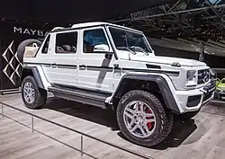 The G-Wagen is characterised by its boxy styling and body-on-frame construction. It uses three fully locking differentials, one of the few passenger car vehicles to have such a feature. Despite the introduction of an intended replacement, the unibody SUV Mercedes-Benz GL-Class in 2006, the G-Class is still in production and is one of the longest-produced vehicles in Daimler's history, with a span of 46 years. Only the Unimog surpasses it.[4] In 2018, Mercedes-Benz introduced the second-generation W463 with heavily revised chassis, powertrain, body, and interior. In 2023, Mercedes-Benz announced plans to launch a smaller version of the G-Class, named "little G"—though no definitive date was given for the launch.[5]