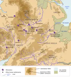 4. ^ Brooks, N. (1989). "The formation of the Mercian kingdom". In Bassett, Steven (ed.). The Origins of Anglo-Saxon Kingdoms. Leicester. p. 159.{{cite encyclopedia}}: CS1 maint: location missing publisher (link)