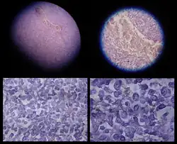 | Diagnostic method | Medical imaging, examining fluid produced by the cancer, tissue biopsy[2] |