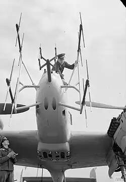 During the Balkans and North African campaigns and on the Eastern Front, the Bf 110 rendered valuable ground support to the German Army as a potent fighter-bomber.[5] Later in the conflict, it was developed into a formidable radar-equipped night fighter, becoming the principal night-fighting aircraft of the Luftwaffe. The majority of the German night fighter aces flew the Bf 110 at some point during their combat careers and the top night fighter ace, Major Heinz-Wolfgang Schnaufer, flew it exclusively and claimed 121 victories in 164 sorties.[6] In addition to its use by the Luftwaffe, other operators of the type included the Hungarian Air Force, the Regia Aeronautica, and the Romanian Air Force.
