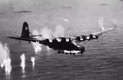 On 22 April 1943, a formation of 27 fully loaded Me 323s was being escorted across the Sicilian Straits by Messerschmitt Bf 109s of Jagdgeschwader 27 when it was intercepted by seven squadrons — Supermarine Spitfires (No. 1 Squadron SAAF) and Curtiss P-40 Kittyhawks (No. 7 South African Wing).[4] Of the 27 transports, 16 or 17 were shot down. Three or four P-40s were shot down by the escorts.[5][6]