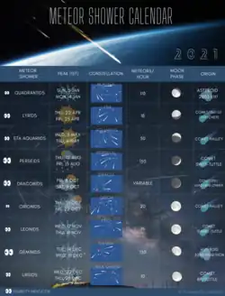 60. ^ "List of all meteor showers". International Astronomical Union. 15 August 2015.