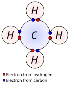 Methane is a tetrahedral molecule with four equivalent C–H bonds. Its electronic structure is described by four bonding molecular orbitals (MOs) resulting from the overlap of the valence orbitals on C and H. The lowest-energy MO is the result of the overlap of the 2s orbital on carbon with the in-phase combination of the 1s orbitals on the four hydrogen atoms. Above this energy level is a triply degenerate set of MOs that involve overlap of the 2p orbitals on carbon with various linear combinations of the 1s orbitals on hydrogen. The resulting "three-over-one" bonding scheme is consistent with photoelectron spectroscopic measurements.