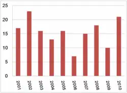 81. ^ a b c "FRA Office of Safety Analysis Web Site". Casualties By State, Railroad or Type. Federal Railroad Administration, Office of Safety Analysis. May 20, 2011. Archived from the original on September 4, 2011. Retrieved May 20, 2011.