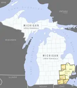 Metro Detroit is a major metropolitan area in the U.S. state of Michigan, consisting of the city of Detroit and over 200 municipalities in the surrounding area.[2] There are varied definitions of the area, including the official statistical areas designated by the Office of Management and Budget, a federal agency of the United States.