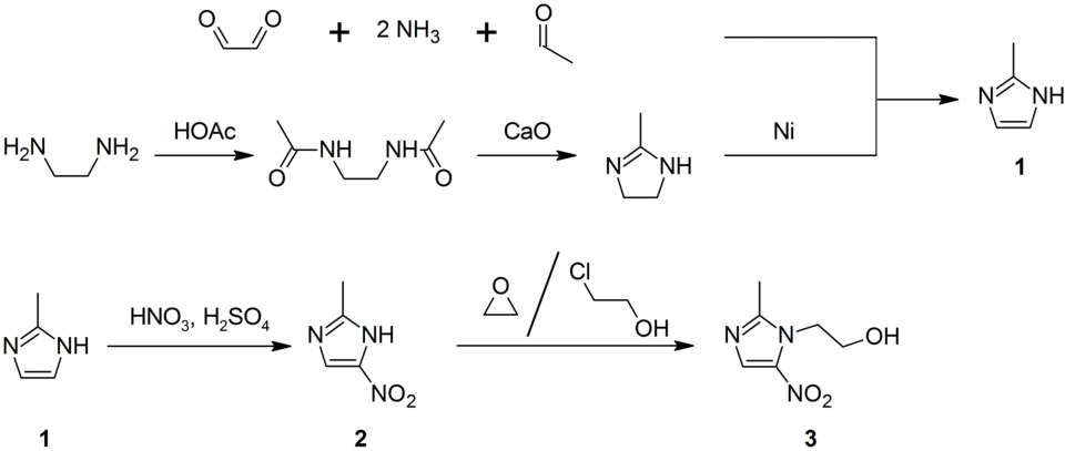 82. ^ Kraft MY, Kochergin PM, Tsyganova AM, Shlikhunova VS (1989). "Synthesis of metronidazole from ethylenediamine". Pharmaceutical Chemistry Journal. 23 (10): 861–863. doi:10.1007/BF00764821. S2CID 38187002.