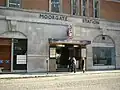The Metropolitan Railway, also known as the Met, was a passenger and goods railway that served London from 1863 to 1933, its main line heading north-west from the City to what were to become the Middlesex suburbs. Its first line connected the mainline railway termini at Paddington, Euston and King's Cross to the City, built beneath the New Road using the cut-and-cover method between Paddington and King's Cross, and in tunnel and cuttings beside Farringdon Road from King's Cross to near Smithfield. The world's first underground railway, it opened on 10 January 1863 with gas-lit wooden carriages hauled by steam locomotives. The line operated at a frequency of three trains per hour, rising to four trains per hour during the peak periods.[5][6][7] In the 1871 plans for an underground railway in Paris, it was called the Métropolitain.[8]