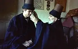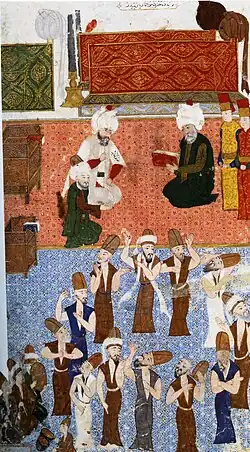 The order was established after Rumi's death in 1273 by his son Sultan Veled and Husameddin Chelebi (who inspired Rumi to write the Mathnavi).[9] Like his father, Sultan Veled is celebrated for his poetry. Lyrics he wrote are often sung during the sema ceremony itself,[11] and both he and Husameddin Chelebi are honoured within the order as accomplished Sufi mystics in their own right. It was they who had Rumi's mausoleum built in Konya, which to this day is a place of pilgrimage for many Muslims (and non-Muslims). A number of Rumi's successors, including both Sultan Veled and Husameddin Chelebi themselves, are also buried there. Their personal efforts to establish the order were continued by Sultan Veled's son Ulu Arif Chelebi.[3]