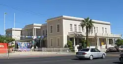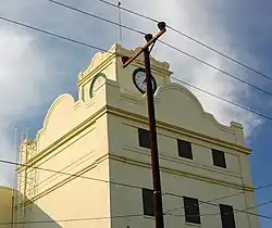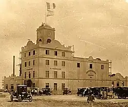 The Mexican side was named Mexicali (a portmanteau composed of "Mexico" and "California") by Coronel Agustín Sanguinéz. Initially the area belonged to the municipality of Ensenada.[9] The town of Mexicali was officially created on 14 March 1903 when Manuel Vizcarra was named as the town's first authority and Assistant Judge (juez auxiliar).[7] On January 29, 1911, Mexicali was briefly "liberated" by the Liberal Party of Mexico during the Mexican Revolution. Mayor Baltazar Aviléz declared the municipality of Mexicali on November 4, 1914, and called for elections to creation of the first ayuntamiento or municipality, which was then headed by Francisco L. Montejano.[9]