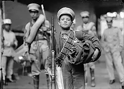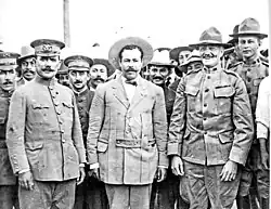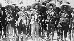 In late 1910, revolutionary movements arose in response to Madero's Plan de San Luis Potosí. Still, their ultimate success resulted from the Federal Army's weakness and inability to suppress them.[50] Madero's vague promises of land reform attracted many peasants throughout the country. Spontaneous rebellions arose in which ordinary farm laborers, miners and other working-class Mexicans, along with much of the country's population of indigenous peoples, fought Díaz's forces with some success. Madero attracted the forces of rebel leaders such as Pascual Orozco, Pancho Villa, Emiliano Zapata, and Venustiano Carranza. A young and able revolutionary, Orozco—along with Chihuahua Governor Abraham González—formed a powerful military union in the north and, although they were not especially committed to Madero, took Mexicali and Chihuahua City. These victories encouraged alliances with other revolutionary leaders, including Villa. Against Madero's wishes, Orozco and Villa fought for and won Ciudad Juárez, bordering El Paso, Texas, on the south side of the Rio Grande. Madero's call to action had unanticipated results, such as the Magonista rebellion of 1911 in Baja California.[51]