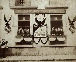 Huerta's presidency is usually characterized as a dictatorship. From the point of view of revolutionaries at the time and the construction of historical memory of the Revolution, it is without any positive aspects. "Despite recent attempts to portray Victoriano Huerta as a reformer, there is little question that he was a self-serving dictator."[83] There are few biographies of Huerta, but one strongly asserts that Huerta should not be labeled simply as a counter-revolutionary,[84] arguing that his regime consisted of two distinct periods: from the coup in February 1913 up to October 1913. During that time he attempted to legitimize his regime and demonstrate its legality by pursuing reformist policies; and after October 1913, when he dropped all attempts to rule within a legal framework and began murdering political opponents while battling revolutionary forces that had united in opposition to his regime.[85]