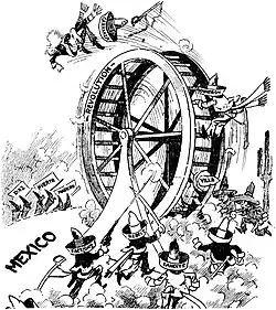 Madero's plan was aimed at fomenting a popular uprising against Díaz, but he also understood that the support of the United States and American financiers would be of crucial importance in undermining the regime. The rich and powerful Madero family drew on its resources to make regime change possible, with Madero's brother Gustavo A. Madero hiring, in October 1910, the firm of Washington lawyer Sherburne Hopkins, the "world's best rigger of Latin-American revolutions", to encourage support in the U.S.[30] A strategy to discredit Díaz with American business and the U.S. government achieved some success, with Standard Oil representatives engaging in talks with Gustavo Madero. More importantly, the American government "bent neutrality laws for the revolutionaries".[49]