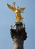 During the colonial period, the city's motto was "Muy Noble e Insigne, Muy Leal e Imperial" (Very Noble and Distinguished, Very Loyal and Imperial).[41][42] During Andrés Manuel López Obrador's administration (2018–24) a political slogan was introduced: la Ciudad de la Esperanza (lit.'The City of Hope'). This motto was quickly adopted as a city nickname but has faded since the new motto, Capital en Movimiento ("Capital in Movement"), was adopted by the administration headed by Marcelo Ebrard; this latter motto is not really treated as a nickname.