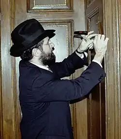 40. ^ a b Rachel Feldman. "Diving Deep into Mezuzah Customs and Lore". Judica Web Store. Retrieved May 17, 2022.