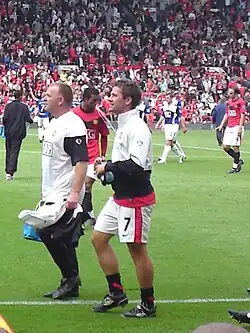 Owen scored his first goal for United on his debut, scoring an 84th-minute winner after coming on as a substitute in a pre-season friendly against a Malaysian XI;[105] he followed this up by scoring three more goals in United's pre-season games.[106][107] Owen made his league debut for United when he came on as a substitute against Birmingham City on 16 August in a 1–0 win,[108] and scored his first competitive goal in a Manchester United shirt against Wigan Athletic on 22 August in a 5–0 away win.[109] On 20 September, Owen scored his first goal at Old Trafford, in the sixth minute of stoppage time against local rivals Manchester City to give United a 4–3 derby win. This meant that Owen had now scored in his third derby, after scoring in the Merseyside derby, and the Tyne–Wear derby in previous years.[110] Owen struggled to recall the moments immediately after the goal, and said that it ranked as one of his most important.[111]