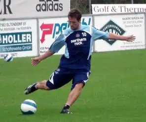 Owen returned to action after almost five months of layoff during the 1999–2000 season.[16] He played intermittently throughout the season and ended up ceding the Golden Boot to Kevin Phillips.[26] He had completed only six full games by January and, during a frustrating spell punctuated by recurring breakdowns,[26] had managed to stay the 90 minutes only three times since mid-October. Owen injured his hamstring once again while playing against Middlesbrough in January. He remained out of action for well over a month and later received treatment from German doctor Hans-Wilhelm Müller-Wohlfahrt.[27] The persistent hamstring problems ended up robbing Liverpool of Owen for a third of a season in which a lack of goals eventually cost them a place in the Champions League.[27]
