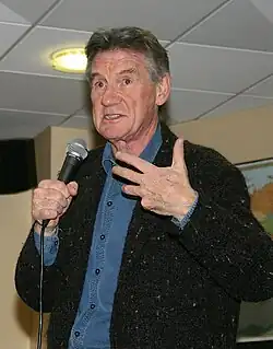 Sir Michael Edward Palin (/ˈpeɪlɪn/ PAY-lin; born 5 May 1943)[1] is an English actor, comedian, writer, and television presenter. He was a member of the Monty Python comedy group.[2] He received the BAFTA Fellowship in 2013[3] and was knighted by Queen Elizabeth II in 2019.[4][5]