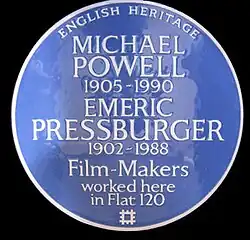 - 2014: An English Heritage Blue plaque to commemorate Michael Powell and Emeric Pressburger was unveiled on 17 February 2014 by Martin Scorsese and Thelma Schoonmaker at Dorset House, Gloucester Place, London NW1 5AG where The Archers had their offices from 1942 to 1947.