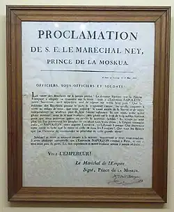 A public proclamation by Ney, dated March 1815, urging French soldiers to abandon the king and to support Napoleon