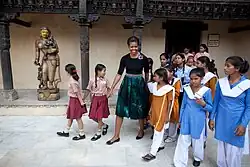 During her early months as First Lady, Obama visited homeless shelters and soup kitchens.[134] She also sent representatives to schools and advocated public service.[134][135]