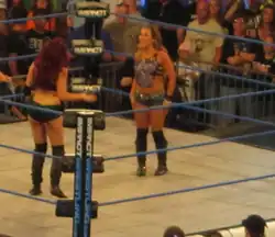 Mickie Laree James (born August 31, 1979)[6][7] is an American professional wrestler and country singer. She is signed to WWE, as an ambassador. She is also signed to Ohio Valley Wrestling (OVW) as Creative Director, Head of Female Talent and Executive Producer. She is also known for her tenures in Total Nonstop Action Wrestling (TNA) and National Wrestling Alliance (NWA).