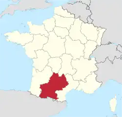 Midi-Pyrénées (French pronunciation: [midi piʁene] ⓘ; Occitan: Miègjorn-Pirenèus [mjɛdˈdʒuɾ piɾeˈnɛws] or Mieidia-Pirenèus [mjejˈði.ɔ piɾeˈnɛws]; Spanish: Mediodía-Pirineos) is a former administrative region of France. Since 1 January 2016, it has been part of the new region of Occitania.[2] It was the largest region of Metropolitan France by area, larger than the Netherlands or Denmark.
