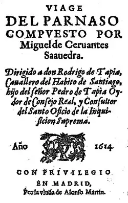His sonnets include Al Túmulo del Rey Felipe en Sevilla, Canto de Calíope and Epístola a Mateo Vázquez. Viaje del Parnaso, or Journey to Parnassus, is his most ambitious verse work, an allegory that consists largely of reviews of contemporary poets.