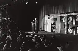 In 1966, Nichols was a star stage director and Time magazine called him "the most in-demand director in the American theatre."[11] Although he had no experience in filmmaking, after he befriended[23] Elizabeth Taylor and Richard Burton, Warner Bros. invited Nichols to direct a screen adaptation of Edward Albee's Who's Afraid of Virginia Woolf?, starring Taylor, Burton, George Segal, and Sandy Dennis, for which he received a fee of $400,000.[24] The film was critically acclaimed, with critics calling Nichols "the new Orson Welles",[11] and a financial success,[25][26] the number 1 film of 1966.[27]