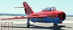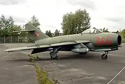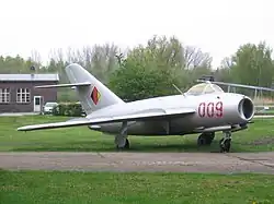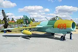 The Mikoyan-Gurevich MiG-17 (Russian: Микоян и Гуревич МиГ-17; NATO reporting name: Fresco)[1] is a transonic fighter aircraft produced in the Soviet Union from 1952 and was operated by air forces internationally. The MiG-17 was license-built in China as the Shenyang J-5 and Poland as the PZL-Mielec Lim-6. The MiG-17 is still being used by the North Korean air force in the present day and has seen combat in the Middle East and Asia.