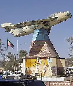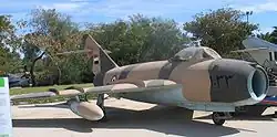The MiG-17 formed a major part of the Arab air strength during the Six-Day War in June 1967.[43][44] The war started with a massive airstrike by Israel against Egyptian, Jordanian, Syrian and Iraqi airbases, with more than 150 Egyptian aircraft destroyed or damaged. Egypt's surviving MiG-17s were heavily deployed in ground attacks against Israeli forces in the Sinai.[43][45] The Soviet Union again replaced Egypt's losses after the war, and Egypt was soon involved in the War of Attrition, a sustained series of armed clashes on and over Sinai, with Egypt's MiG-17s continuing to be used in the ground attack role. While the MiG-17 was slower and shorter-ranged than the Sukhoi Su-7 that was the other main component of Egypt's ground-attack forces, the MiG-17 was more manoeuvrable and sustained lower losses.[46] From 1970, Egypt deployed detachments of MiG-17s to Sudan to support government forces during the First Sudanese Civil War.[47] The MiG-17 continued in use in the Yom Kippur War. MiG-17s were used during the Ofira Air Battle by Egypt. Egyptian and Syrian MiG-17s retired shortly after these wars.