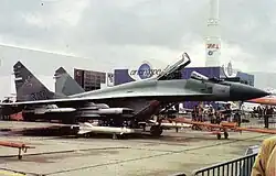 A Soviet Air Forces MiG-29 parked after a display flight at the Abbotsford Air Show, 1989
