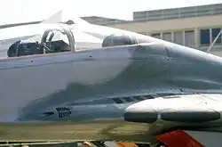 MiG-29UB on display, showing gunport