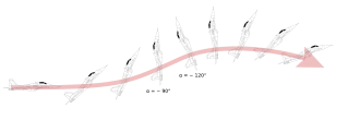 The sketch of the MiG-29 performing the super maneuver, the Pugachev's Cobra