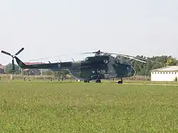 The Mil Mi-8 (Russian: Ми-8, NATO reporting name: Hip) is a medium twin-turbine helicopter, originally designed by the Soviet Central Aerohydrodynamic Institute (TsAGI) in the 1960s and introduced into the Soviet Air Force in 1968. Russian production of the aircraft model still continues as of 2024.[1] In addition to its most common role as a transport helicopter, the Mi-8 is also used as an airborne command post, armed gunship, and reconnaissance platform.